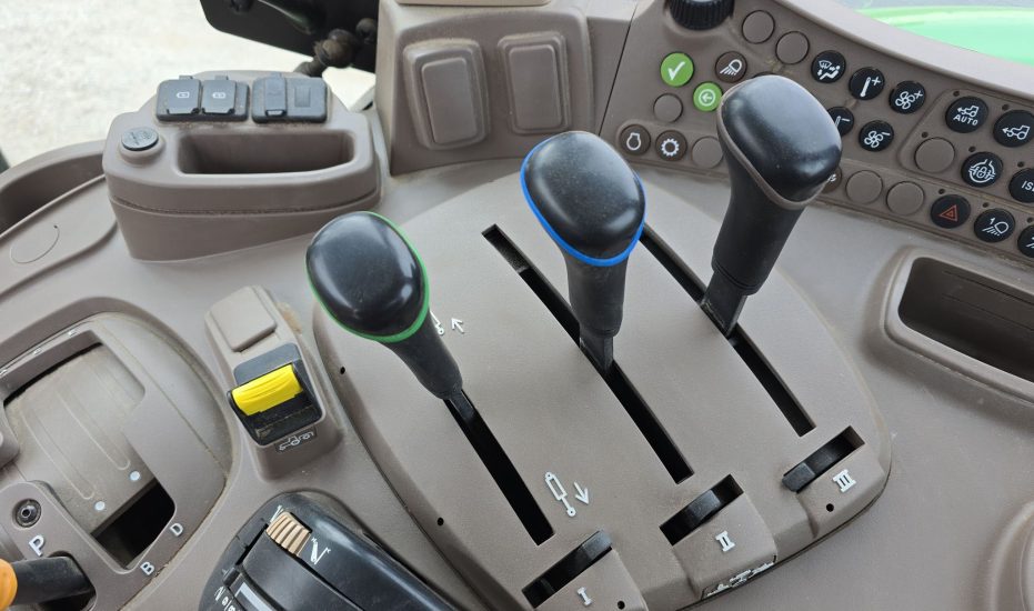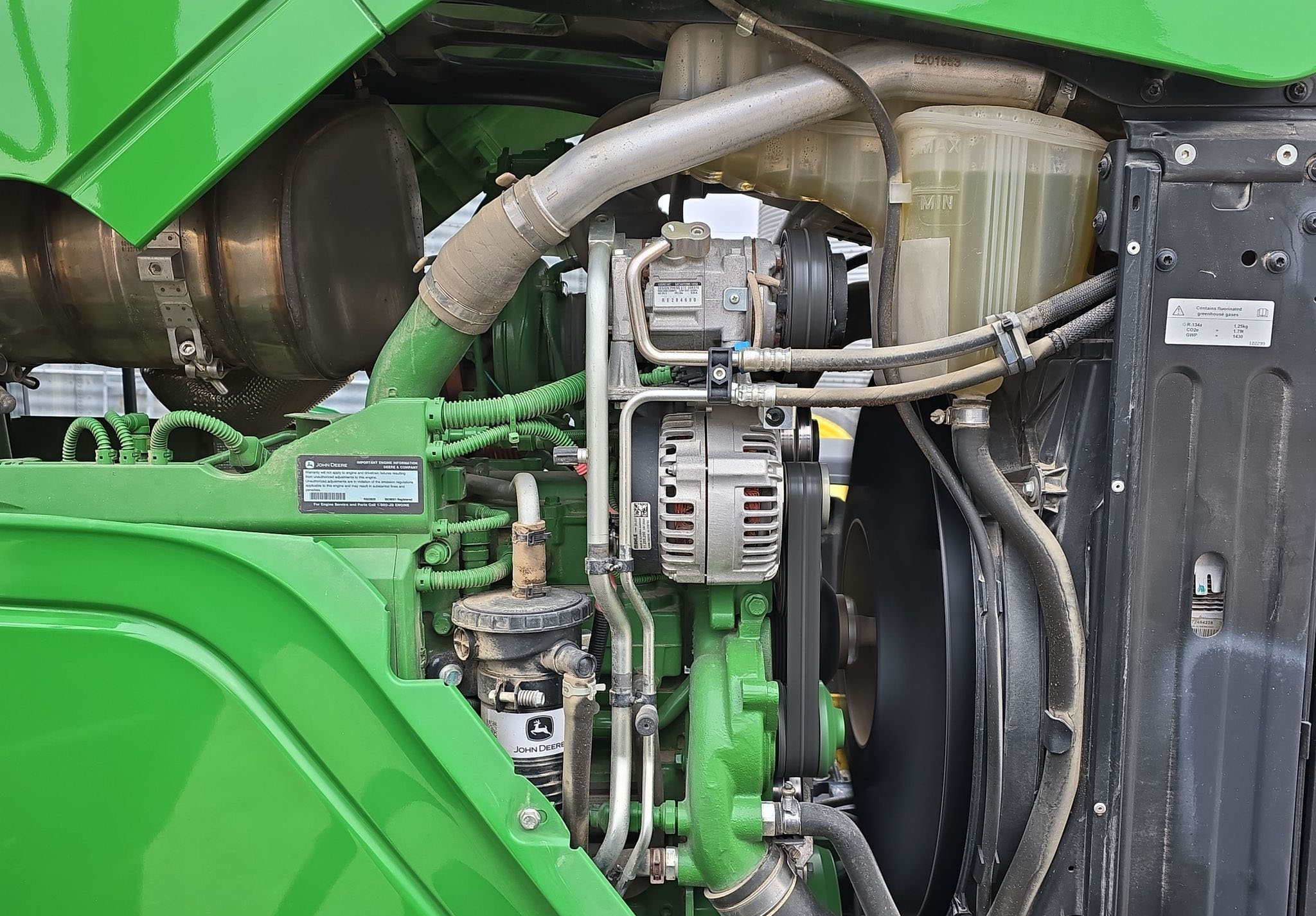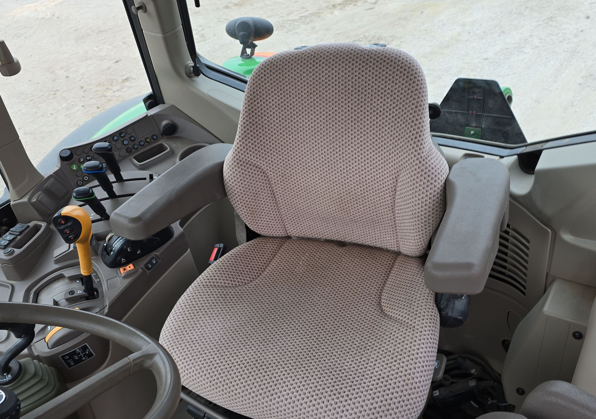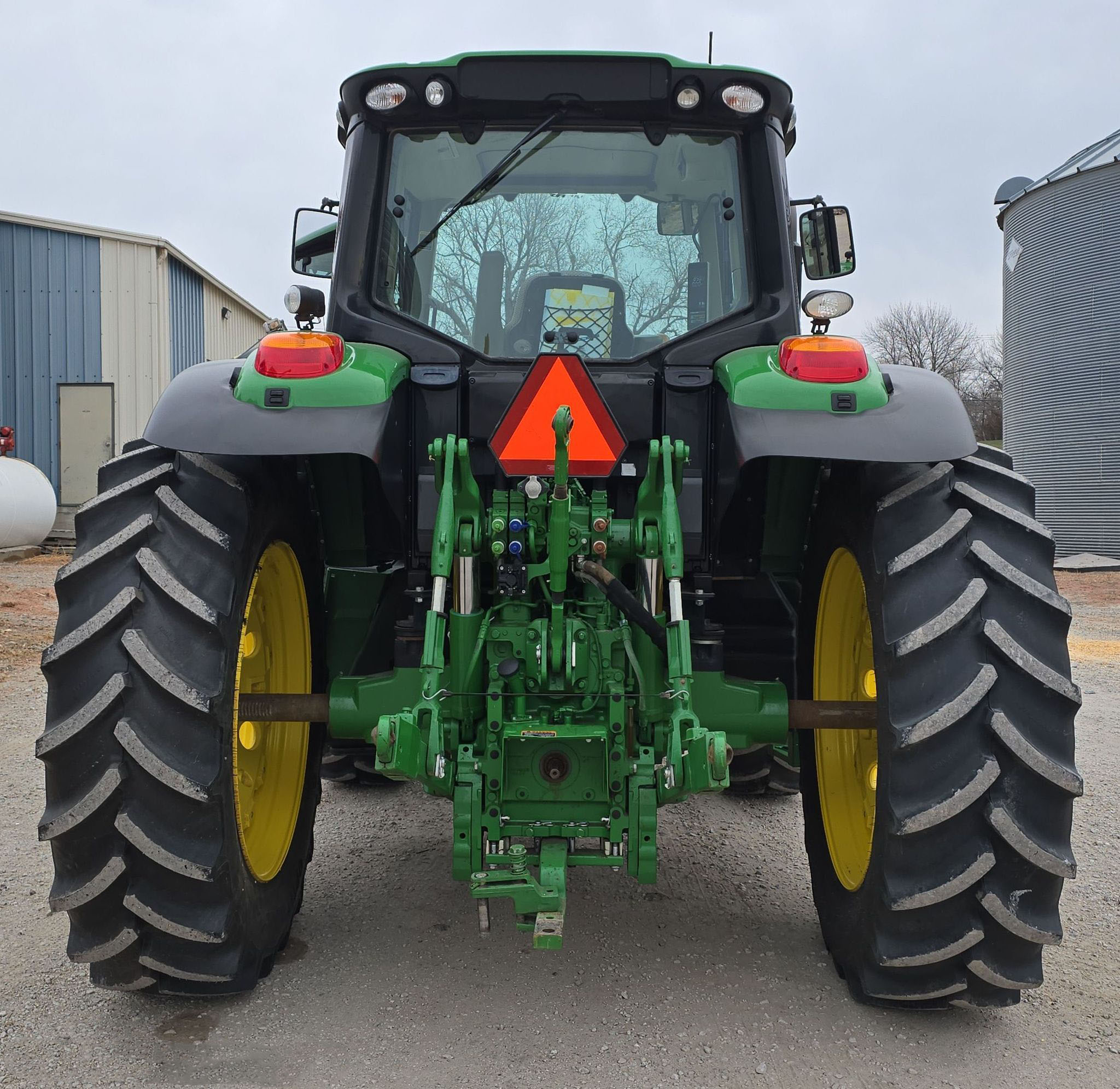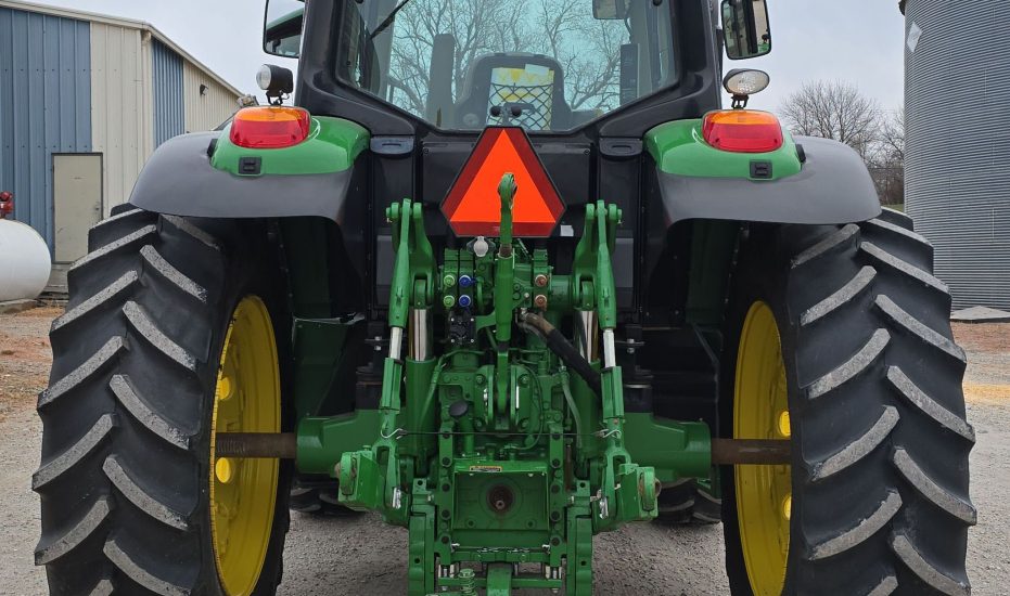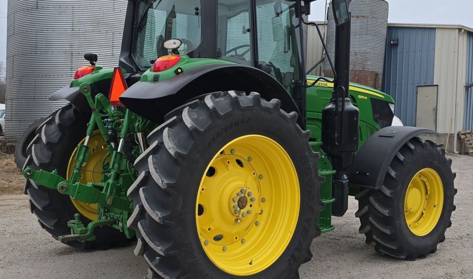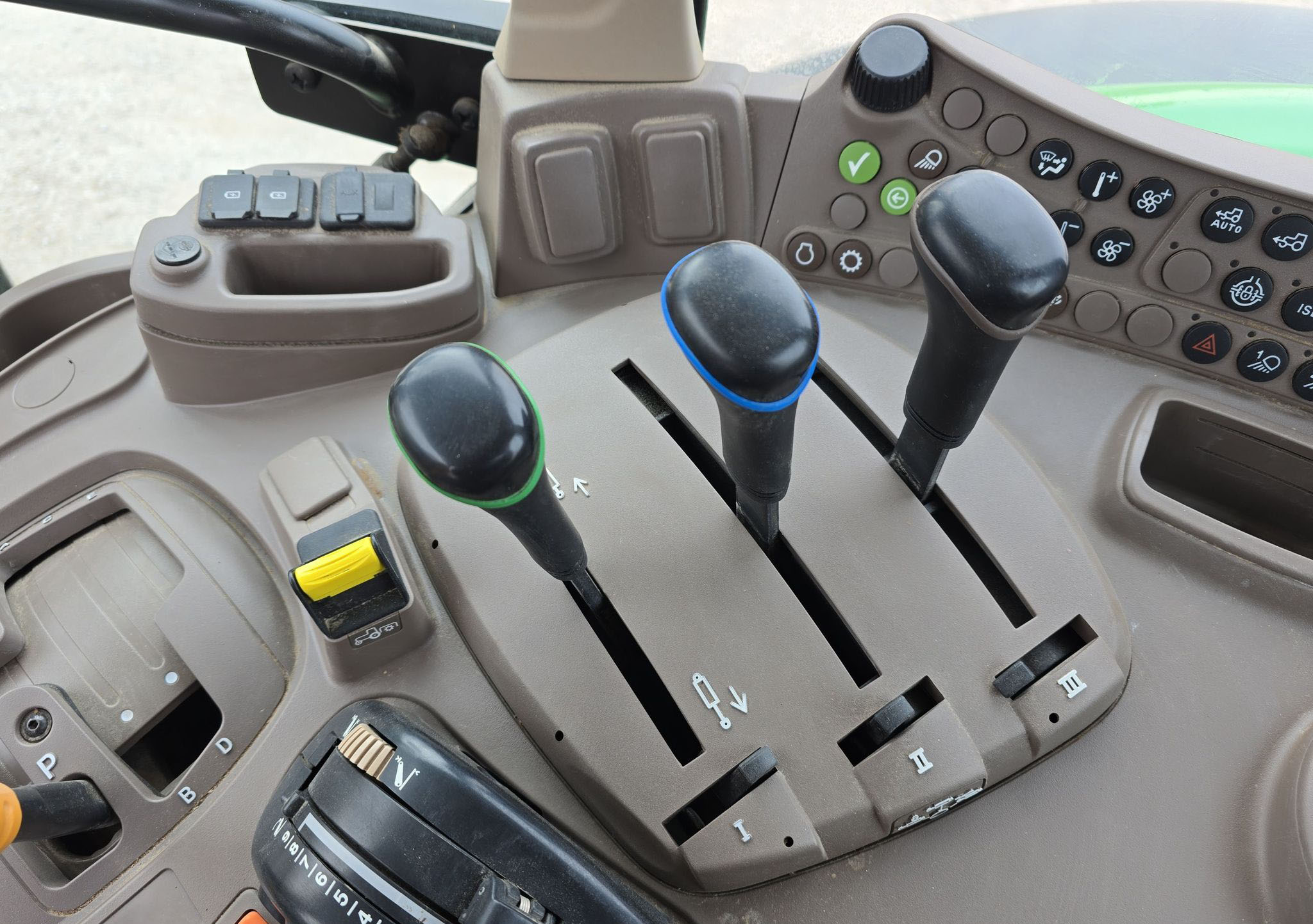 2021 John Deere 6155M MFWD tractor with 856 hours. Powered by a 6-cylinder diesel engine and equipped with a powershift transmission (20F-20R) and left-hand reverser for easy operation. Features include AC and heat in the operator's station, 540 PTO, three-point hitch with top link, seven-pin and ISOBUS outlets, and three hydraulic remote sets. The tractor also comes with 10 suitcase weights for added stability. Tires are 420/85R28 in the front and 480/80R42 in the rear, ensuring reliable traction and performance.