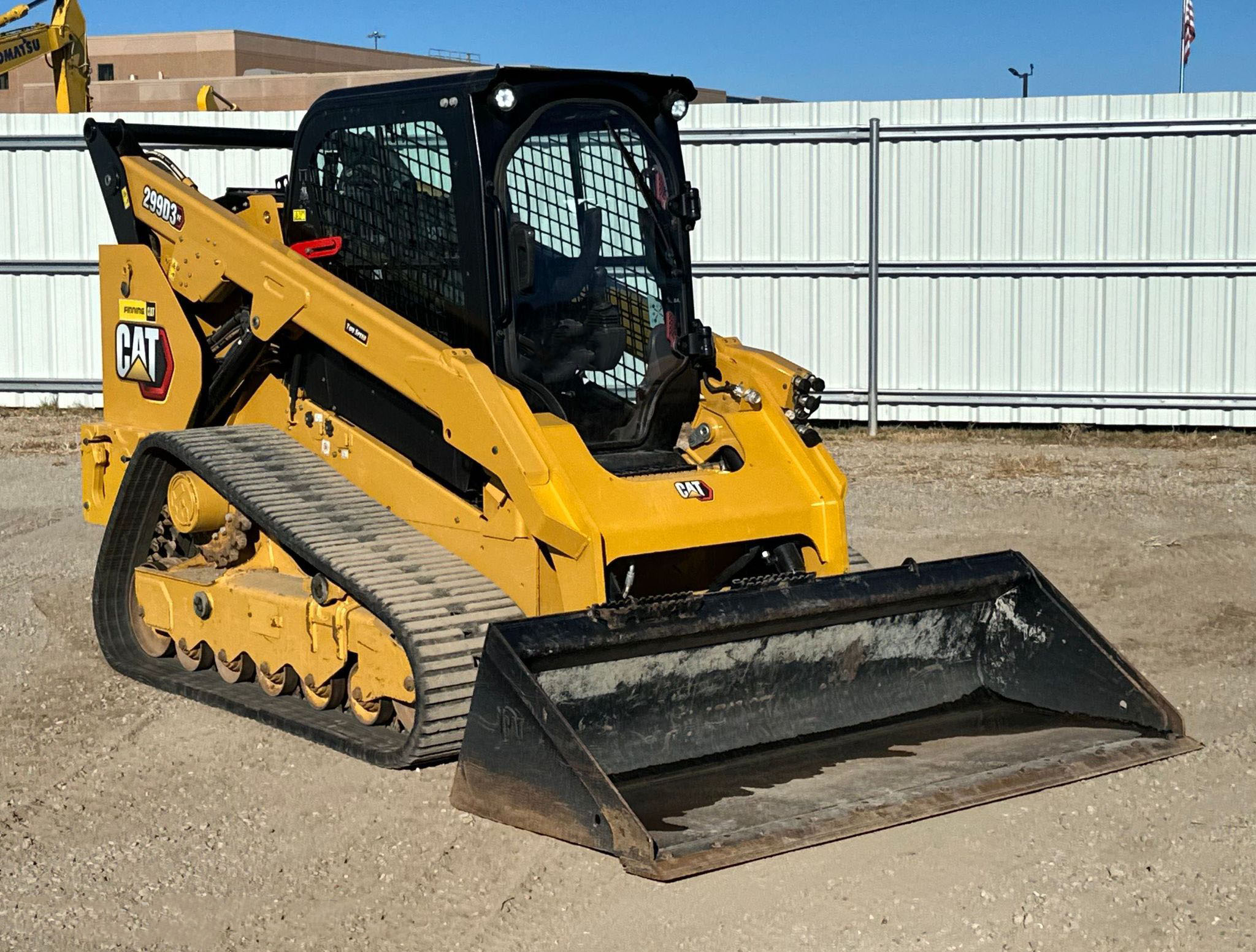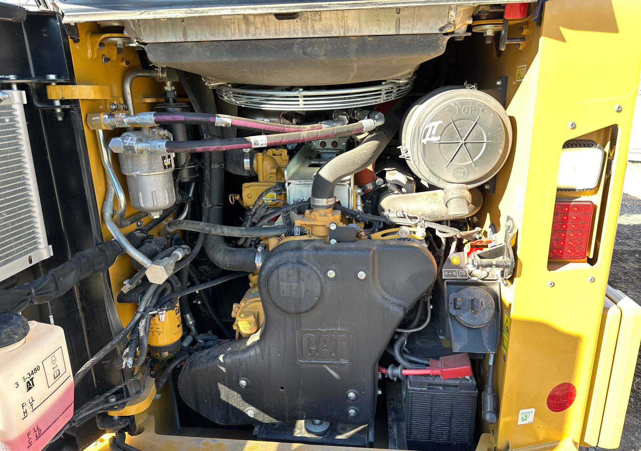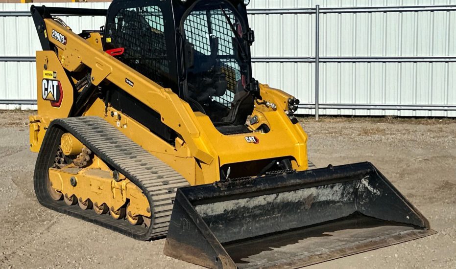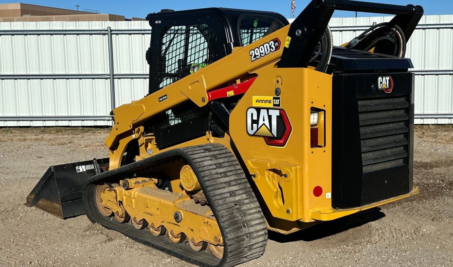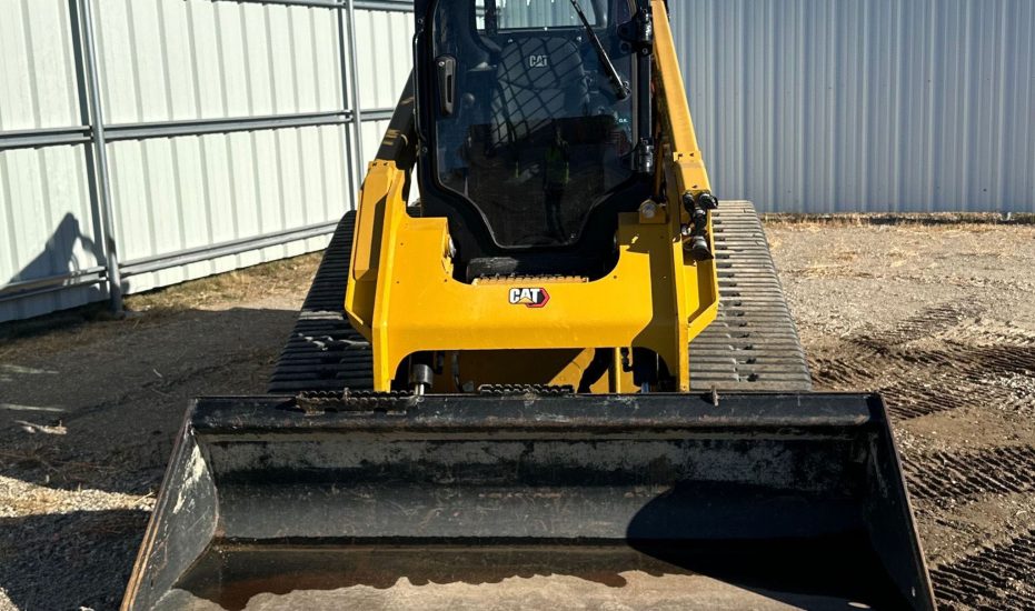 2023 Caterpillar 299D3 XE tracked skid steer loader with 532 hours. Powered by an 81.8 kW Caterpillar C3.8 DIT 4-cylinder diesel engine and hydrostatic transmission with two-speed travel. Features an enclosed cab with AC, heat, backup camera, hand-operated bucket control, pattern changer, and electronic monitoring system. Equipped with auxiliary hydraulics (high flow, high pressure), hydraulic quick coupler, and counterweights. Includes a 0.83 cu.yd. Caterpillar bucket (85" wide, bolt-on cutting edge) and 17.5" wide tracks.
