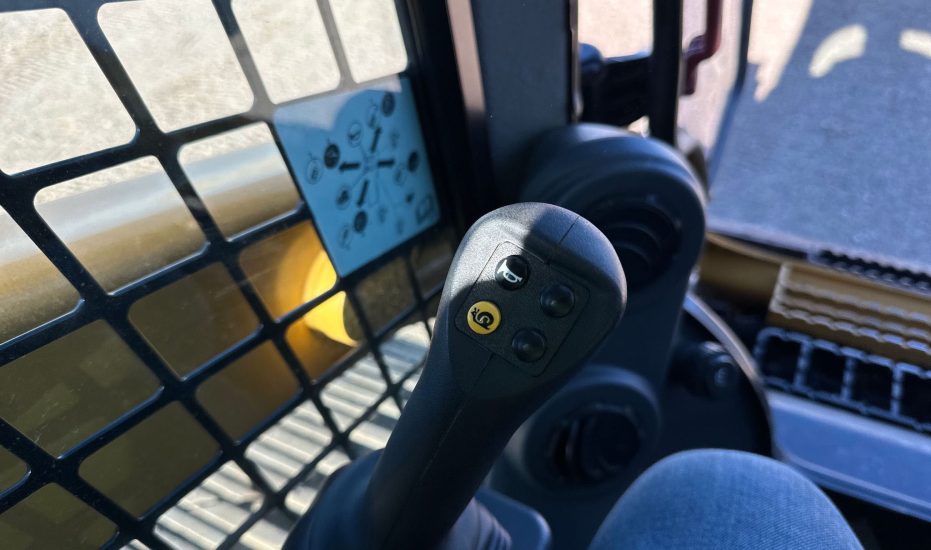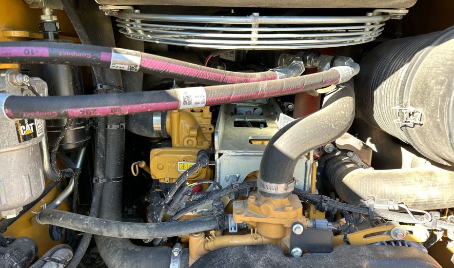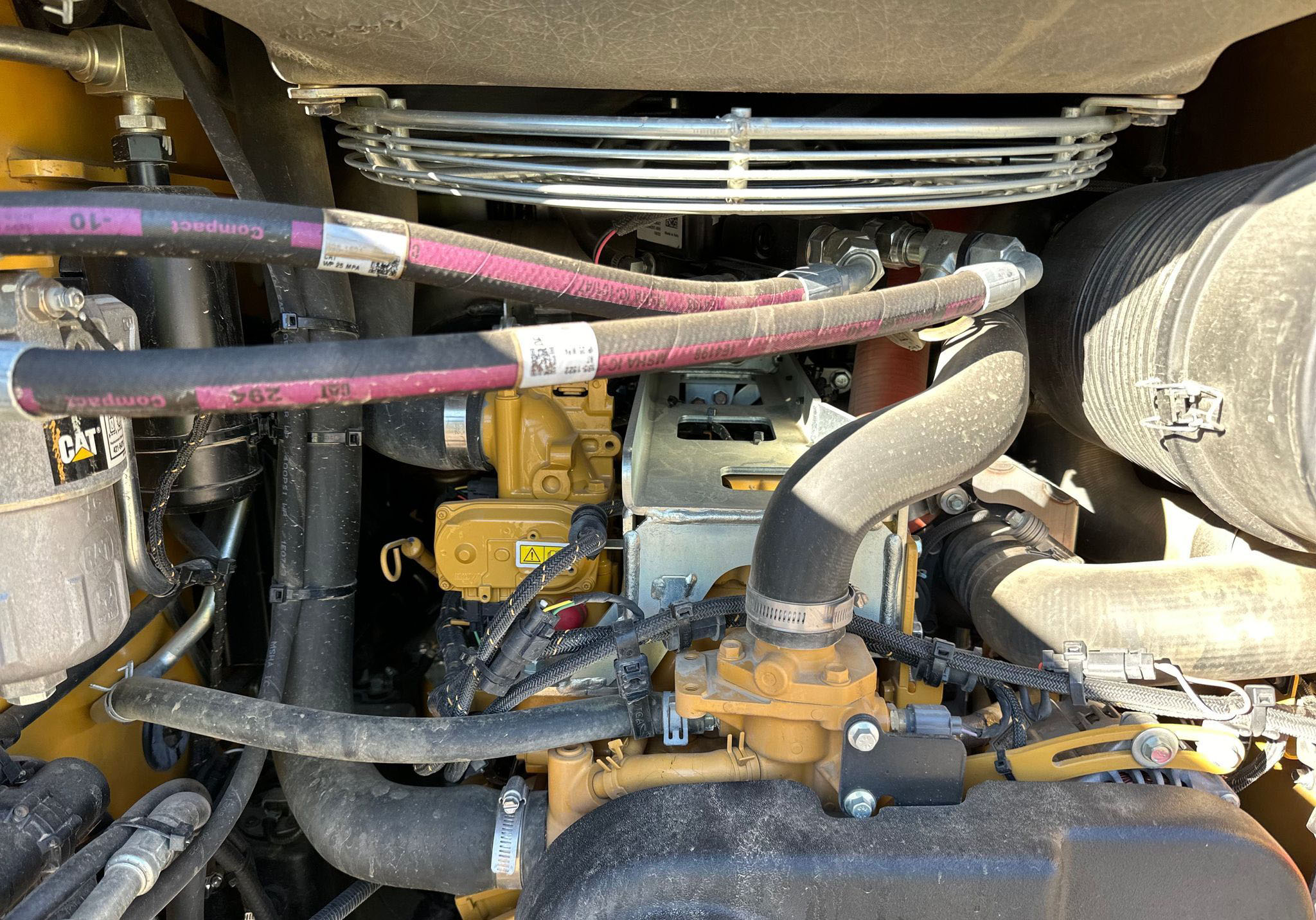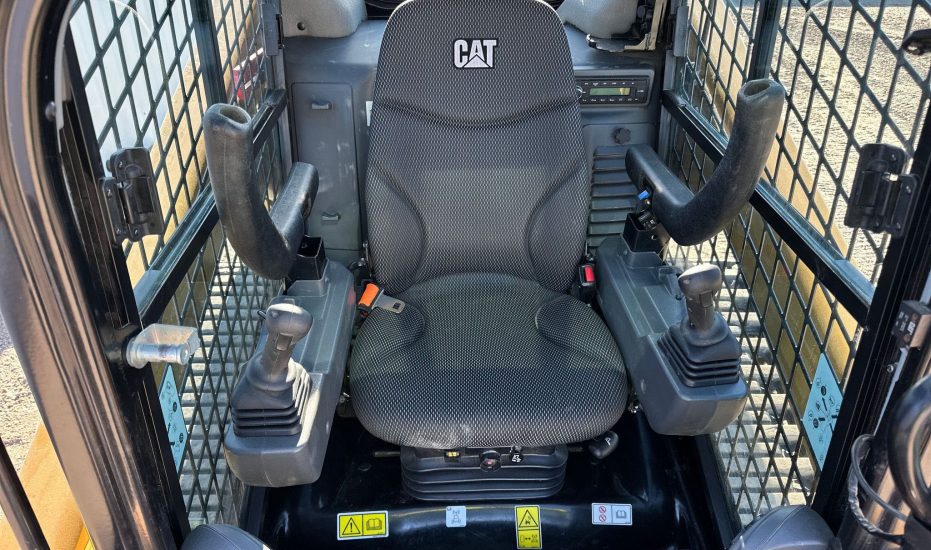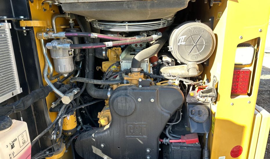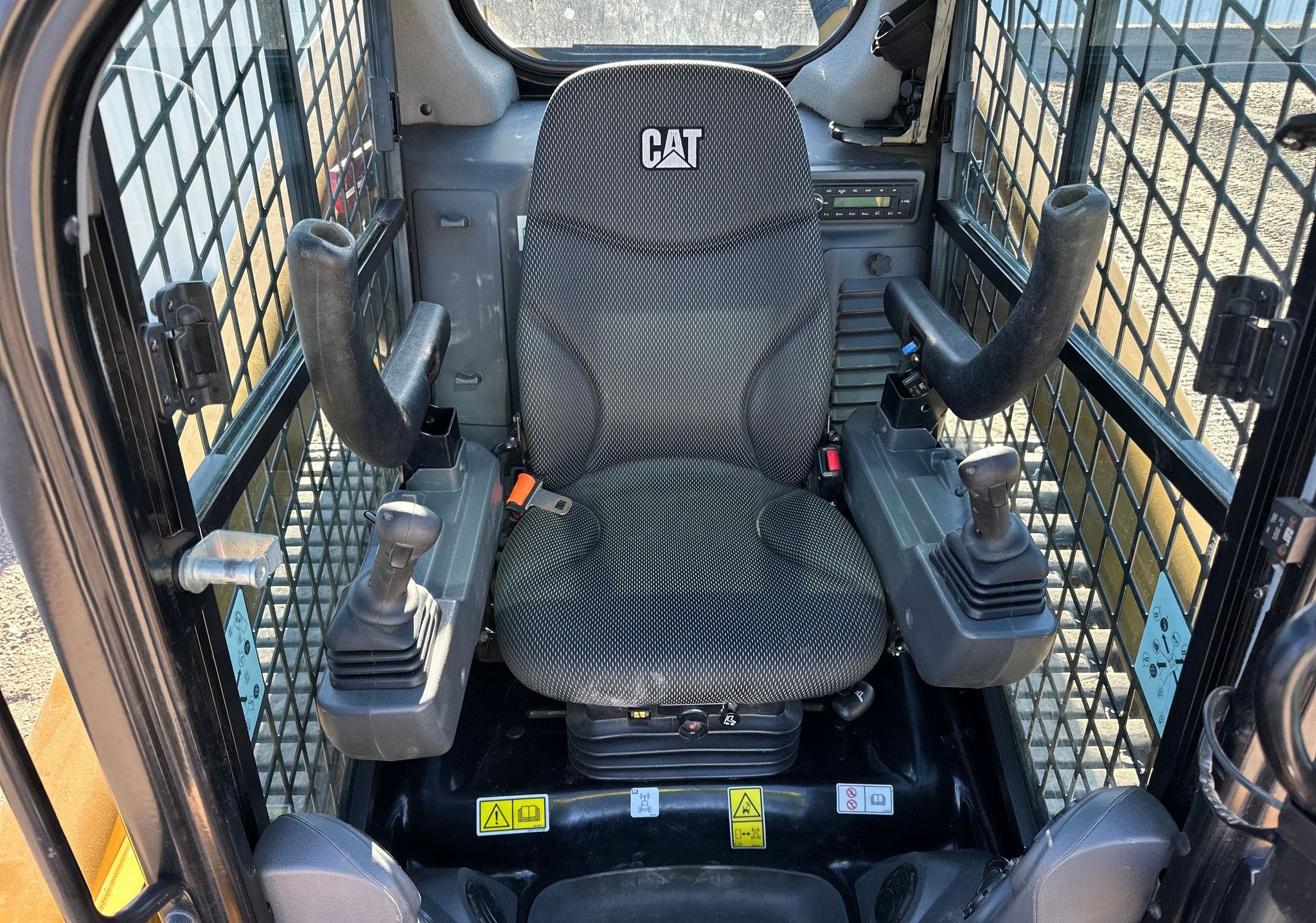 2023 Caterpillar 299D3 XE tracked skid steer loader with 532 hours. Powered by an 81.8 kW Caterpillar C3.8 DIT 4-cylinder diesel engine and hydrostatic transmission with two-speed travel. Features an enclosed cab with AC, heat, backup camera, hand-operated bucket control, pattern changer, and electronic monitoring system. Equipped with auxiliary hydraulics (high flow, high pressure), hydraulic quick coupler, and counterweights. Includes a 0.83 cu.yd. Caterpillar bucket (85" wide, bolt-on cutting edge) and 17.5" wide tracks.